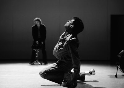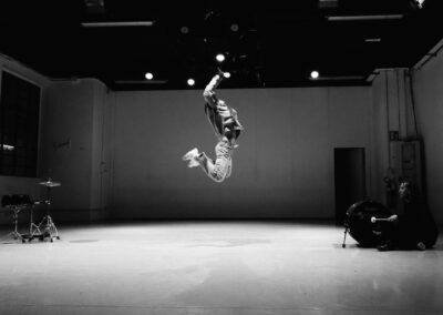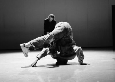 Queste elementi hanno gettato le basi per ampliare la ricerca sul movimento e la composizione coreografica, slegandosi dalle classiche suggestioni sonore e fisiche dell’hip hop, ma aprendosi ad una performance ibrida tra danza e musica contemporanea, dove il ritmo è l’elemento primario per innescare una relazione vitale e pulsante tra i danzatori e il pubblico.