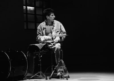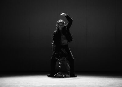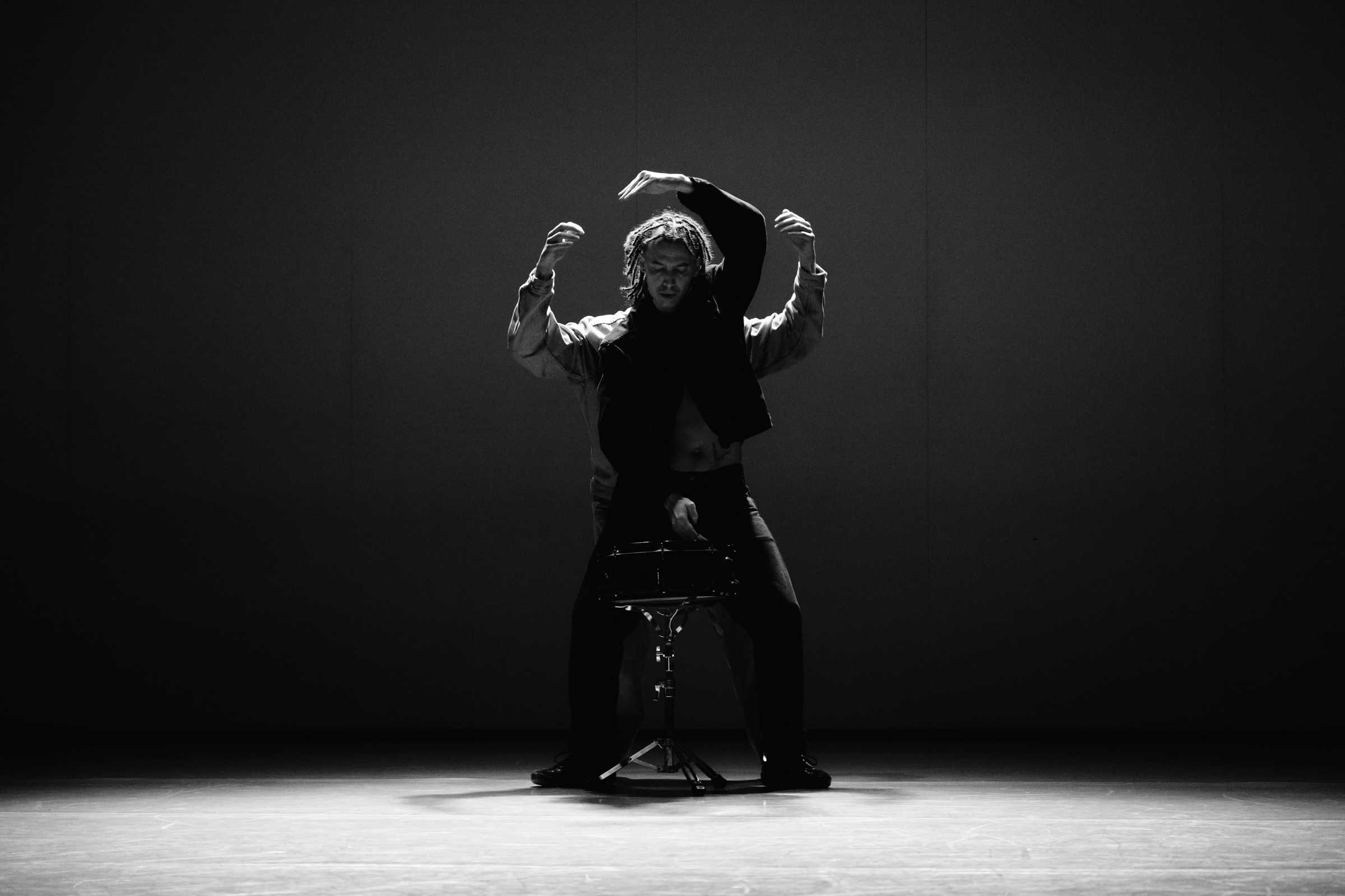 Il progetto ritmico “Rhythm is a Dancer” nasce dalla ricerca di una relazione coreografica tra il corpo e tre percussioni: rullante, hi-hat e gran cassa.