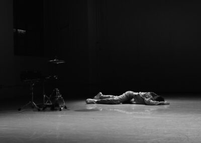La performance ricerca una simbiosi con la ritmica della batteria, decostruendola per poi infine suonarla e fare entare la danza in una simbiosi magica con la musica.